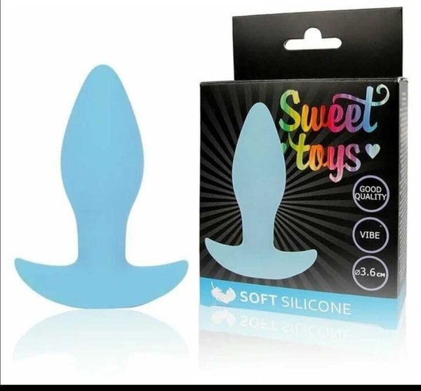 Анальная пробка EROTICON силиконовая голубая, средняя, кристалл прозрачный, 36x84 мм